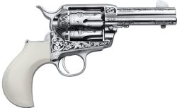 CIMARRON FRONTIER 357MAG PW FS - 7.5" ENGRAVED NICKEL/IVORY